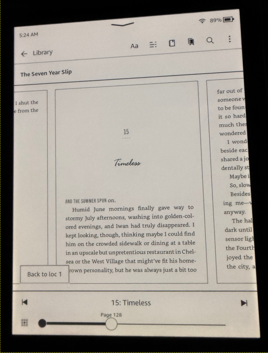 I’ve been seeing a bunch of posts online about a new layout change that appears while reading when you open the on-screen menu. Instead of the menu bars overlapping the page like before, it now shrinks the page view to show the full page, with small sections of the previous and next page also visible in the window. And the bottom navigation bar has been redesigned and now shows less information.